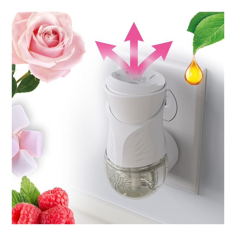 Air Wick Wkład do Elektrycznego Odświeżacza Powietrza Musujące Rose z Maliną to elegancka kompozycja zapachowa, która wprowadza do wnętrza owocowo-kwiatową aurę.