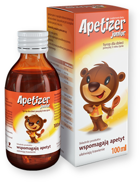 Apetizer junior - suplement diety w postaci syropu, zawierający wyciągi roślinne i witaminy. Jest przeznaczony dla dzieci powyżej 3 roku życia.
