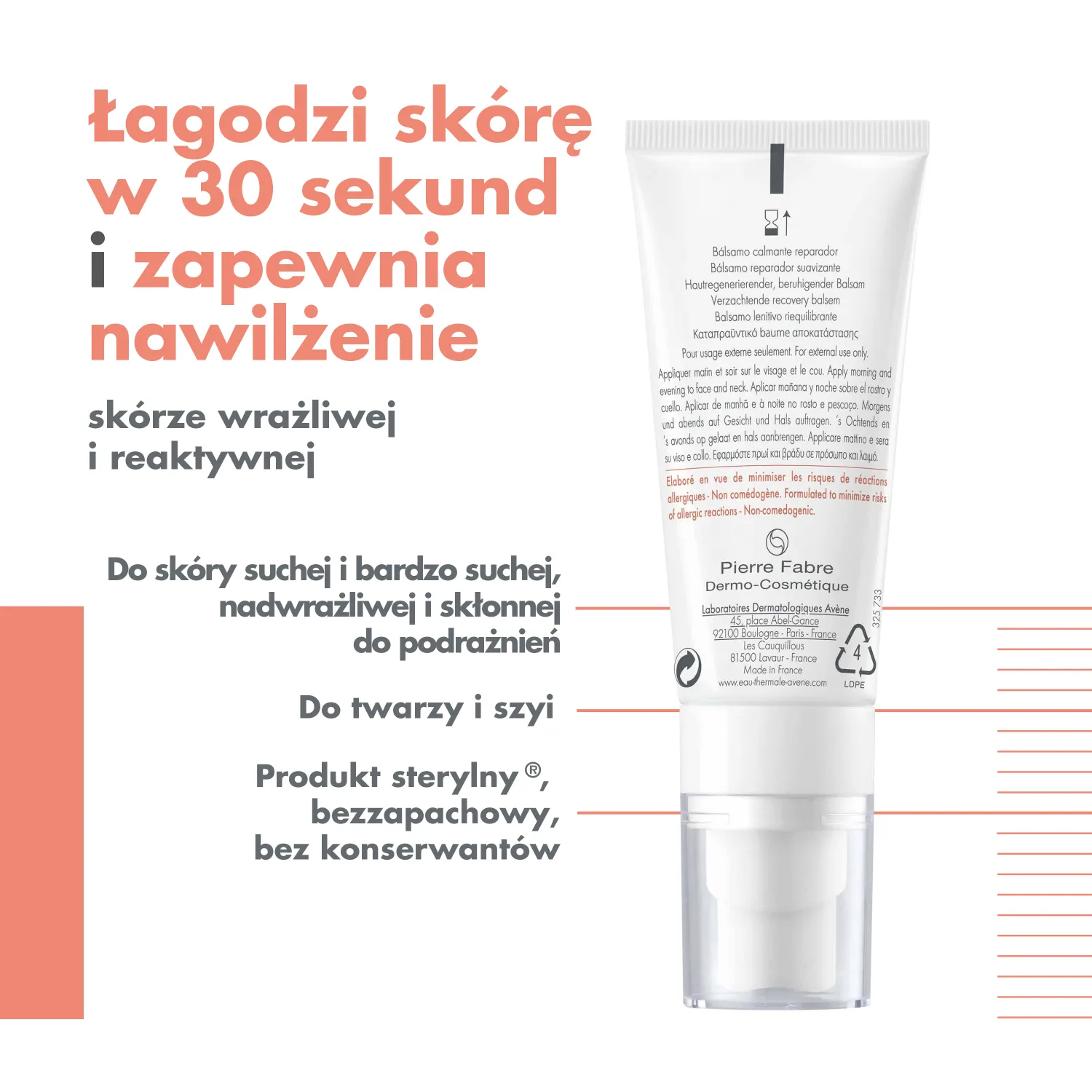 AVENE TOLERANCE CONTROL - BALSAM ŁAGODZĄCO REGENERUJĄCY STWORZONY Z MYŚLĄ O POTRZEBACH OSÓB O SKÓRZE SUCHEJ, BARDZO SUCHEJ, NADWRAŻLIWEJ I ZE SKŁONNOŚCIAMI DO ALERGII.
