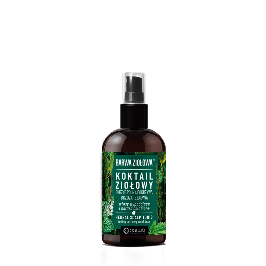 Barwa Ziołowa Koktajl Ziołowy to innowacyjne rozwiązanie dla pielęgnacji włosów bardzo osłabionych i wypadających. Produkt nie zawiera alkoholu, dzięki czemu jest łagodny nawet dla delikatnej skóry głowy. Jego regularne stosowanie wzmacnia włosy i cebulki, pobudzając wzrost nowych włosów, tzw. baby hair. Zawartość ekstraktów z pokrzywy, brzozy i skrzypu wspomaga wydzielanie sebum, co sprawia, że włosy pozostają dłużej świeże i zdrowe.