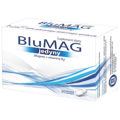 Blumag jedyny - suplement diety zawierający w składzie magnez oraz witaminę B6. Produkt przeznaczony dla osób dorosłych.