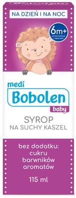 Bobolen Baby Syrop na suchy kaszel to wyrób medyczny opracowany z myślą o łagodzeniu suchego kaszlu przy nieżytach dróg oddechowych oraz podrażnieniach błon śluzowych jamy ustnej i gardła. Jest przeznaczony dla dzieci powyżej 6 miesiąca życia i osób dorosłych. Może być również stosowany u dzieci powyżej 6. miesiąca życia wyłącznie w porozumieniu z lekarzem.