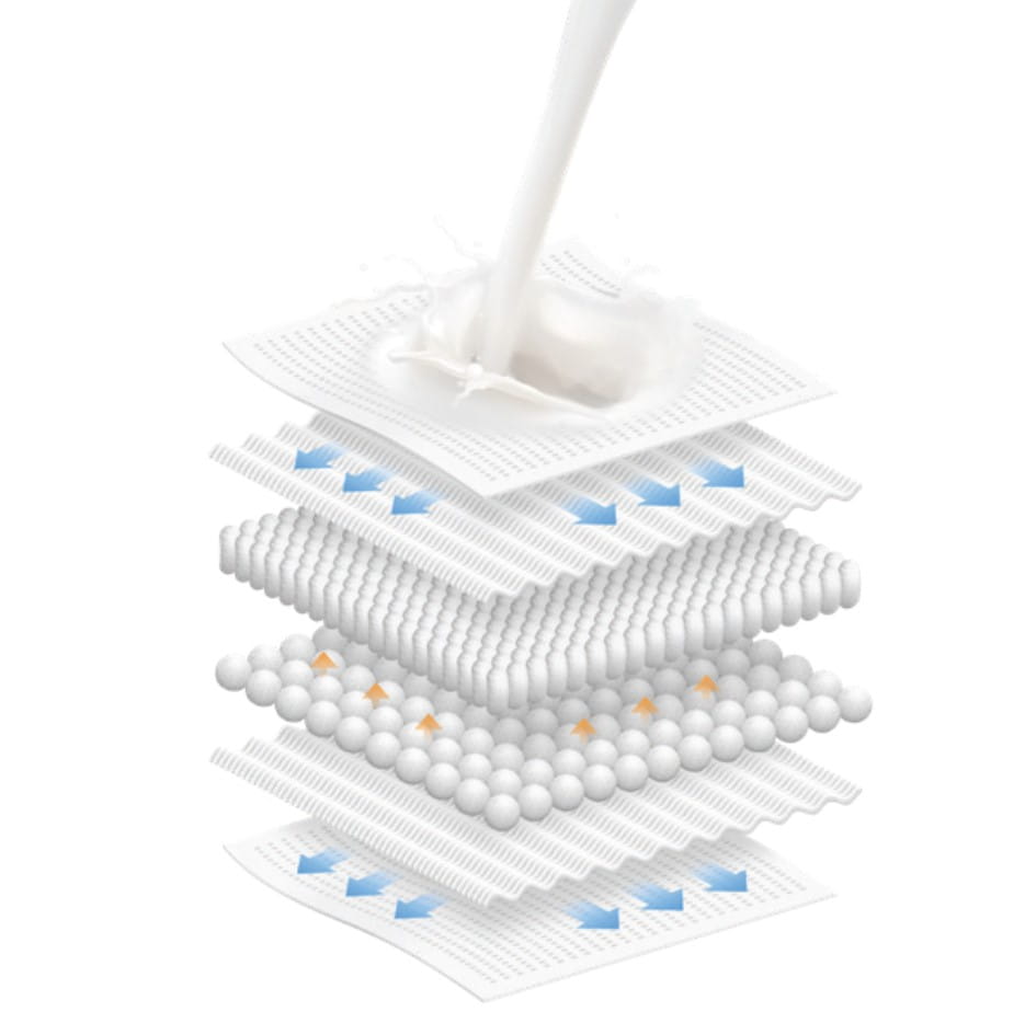 - Ultra chłonne – rdzeń z superabsorbentem pochłania nadmiar pokarmu i wilgoci
