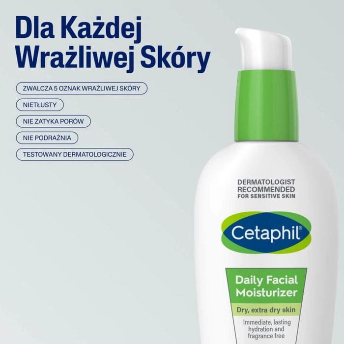 Cetaphil Krem Nawilżający do twarzy na dzień to ultralekki, nietłusty krem, transformujący pielęgnację skóry suchą, bardzo suchą i wrażliwą do nowego wymiaru nawilżenia. Dzięki formule opartej na kwasie hialuronowym i kompleksie składników wiążących wodę w skórze, zapewnia intensywne i długotrwałe uczucie komfortu i gładkości. Jego delikatna konsystencja szybko się wchłania, nie pozostawiając tłustego filmu, co czyni go doskonałym wyborem na co dzień, również pod makijaż. Johnson & Johnson, jako część grupy Galderma, stosuje wyjątkowe technologie, aby produkt ten spełniał najwyższe standardy dermatologiczne.