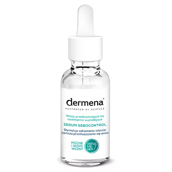 Dermena Sebocontrol to skuteczny produkt do pielęgnacji włosów i skóry głowy, który przywraca równowagę gruczołów łojowych oraz stymuluje odrastanie włosów. Wzbogacony w składniki takie jak wyciąg z kory wierzby białej oraz beta-glukan, zapewnia kojące i łagodzące działanie. Produkt nadaje również włosom gęstość i zwiększa ich objętość, nie obciążając ich. Dedykowany jest osobom z włosami przetłuszczającymi się i wrażliwą skórą głowy.