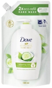 Dove Refreshing Care - pielęgnujące mydło w płynie z ogórkiem i zieloną herbatą w opakowaniu zapasowym.