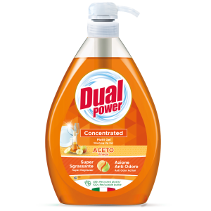 Dual Power Aceto to włoski płyn do mycia naczyń o żelowej, skoncentrowanej formule, która skutecznie usuwa tłuszcz i zabrudzenia nawet w zimnej wodzie. Dodatek aktywnego octu wspiera odtłuszczanie oraz pomaga neutralizować nieprzyjemne zapachy. Produkt jest testowany dermatologicznie, dzięki czemu pozostaje delikatny dla skóry dłoni, a wygodna pompka dozująca ułatwia ekonomiczne użycie.
