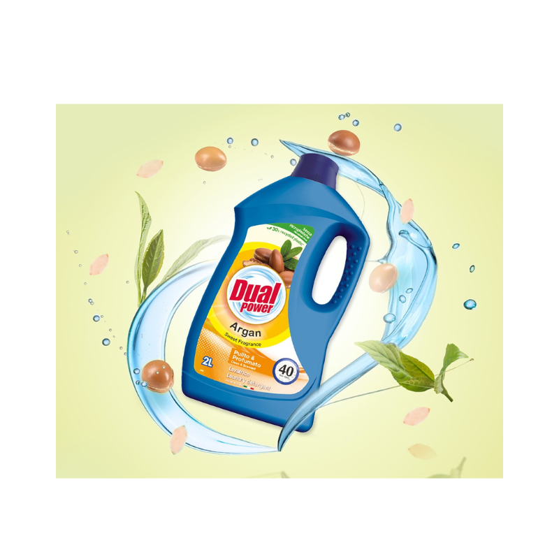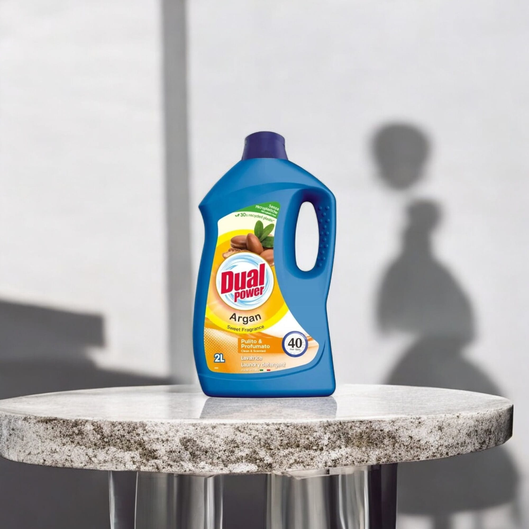 DUAL POWER Płyn do prania ARGAN to innowacyjny produkt chemii gospodarczej z Włoch, zapewniający doskonałe czyszczenie i ochronę.