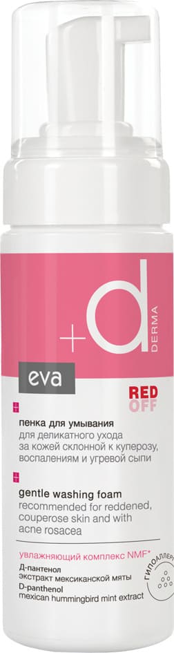 Delikatna pianka myjąca Eva Dermo Red Off to produkt z serii kosmetyków przeznaczonych do cery naczyniowej, wrażliwej i skłonnej do zaczerwienienia. Składniki doskonale nawilżają skórę, zapewniając jej piękny wygląd i ochronę. Dzięki obecności ekstraktu z mięty meksykańskiej jeszcze lepiej koi i redukuje zaczerwienienia.