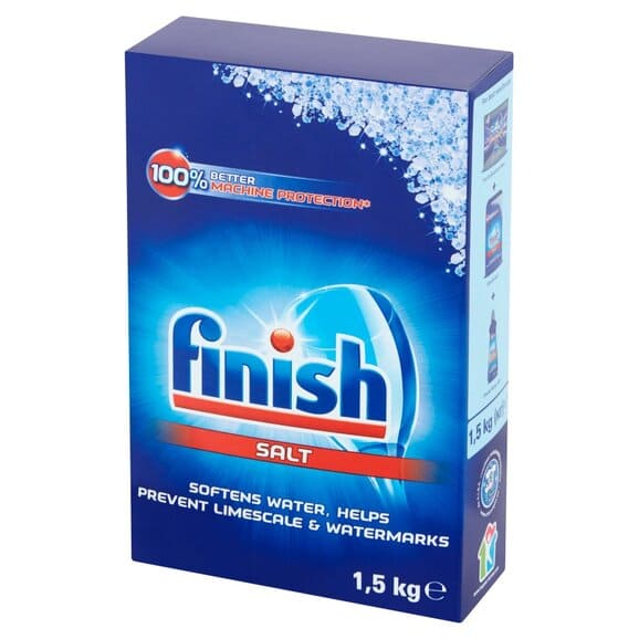 Finish Sól do zmywarki. Twarda woda może pozostawiać osad z kamienia na naczyniach, a także powodować jego osadzanie w trudno dostępnych miejscach zmywarki, co może obniżyć jej wydajność. Sól Finish została stworzona specjalnie po to, aby zmiękczać wodę i chronić twoją zmywarkę przed szkodliwym działaniem twardej wody. Sól Finish polecana jest ponad inne rodzaje soli kuchennej, które mogą zawierać zanieczyszczenia powodujące uszkodzenia zmywarki. Dzięki swojej wysokiej czystości Sól Finish zapewnia o 100 % lepszą ochronę zmywarki przed osadzaniem się kamienia.