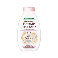 Delikatny, wegański szampon łagodzący Oat Delicacy Garnier Botanic Therapy. Działa jak tarcza i chroni wrażliwą skórę głowy.