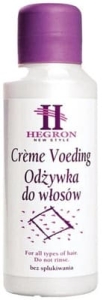Zapobiega łamaniu i kruszeniu się włosów. Odżywka do włosów Hegron posiada działanie antyelektrostatyczne. Może byc stosowana do wszystkich rodzajów włosów, lecz w szczególności polecana jest do włosów farbowanych.
