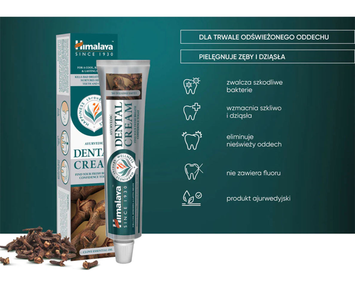 Himalaya Dental Cream to Ajurwedyjska pasta do zębów z unikalną, testowaną klinicznie formułą, zawierającą olejek z goździków.