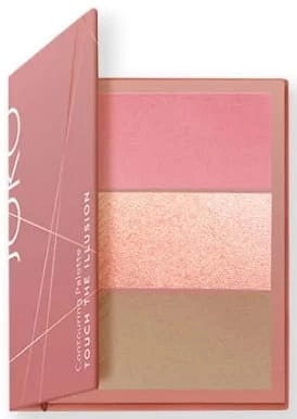 Joko Touch The Illusion - paletka do konturowania twarzy 3w1 z rozświetlaczem, różem i bronzerem, 01 Pink.