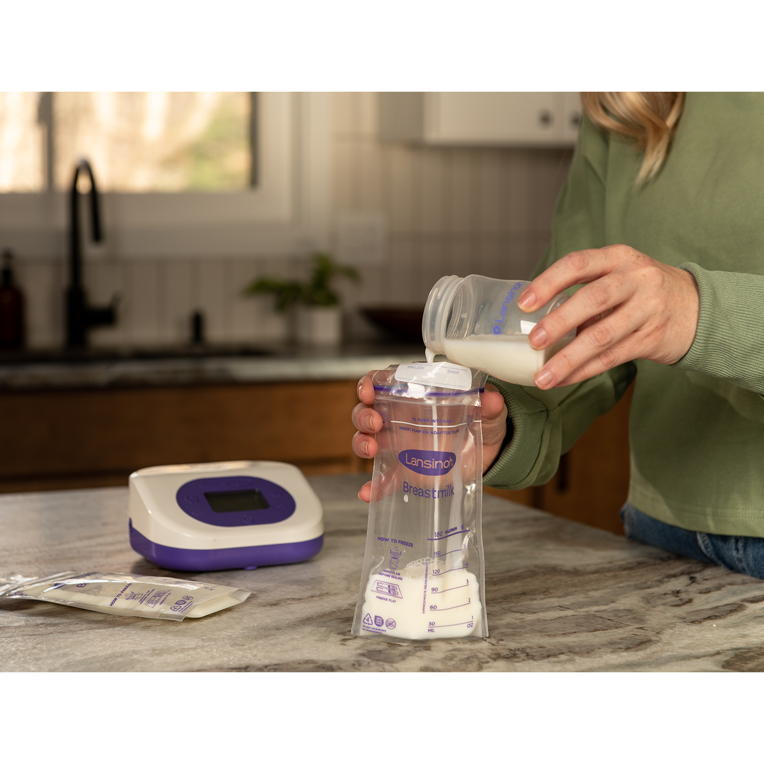 Lansinoh sterylne woreczki zapewniają bezpieczne i wygodne przechowywanie odciągniętego pokarmu. Dzięki podwójnemu zamknięciu, woreczki zapobiegają wyciekom.