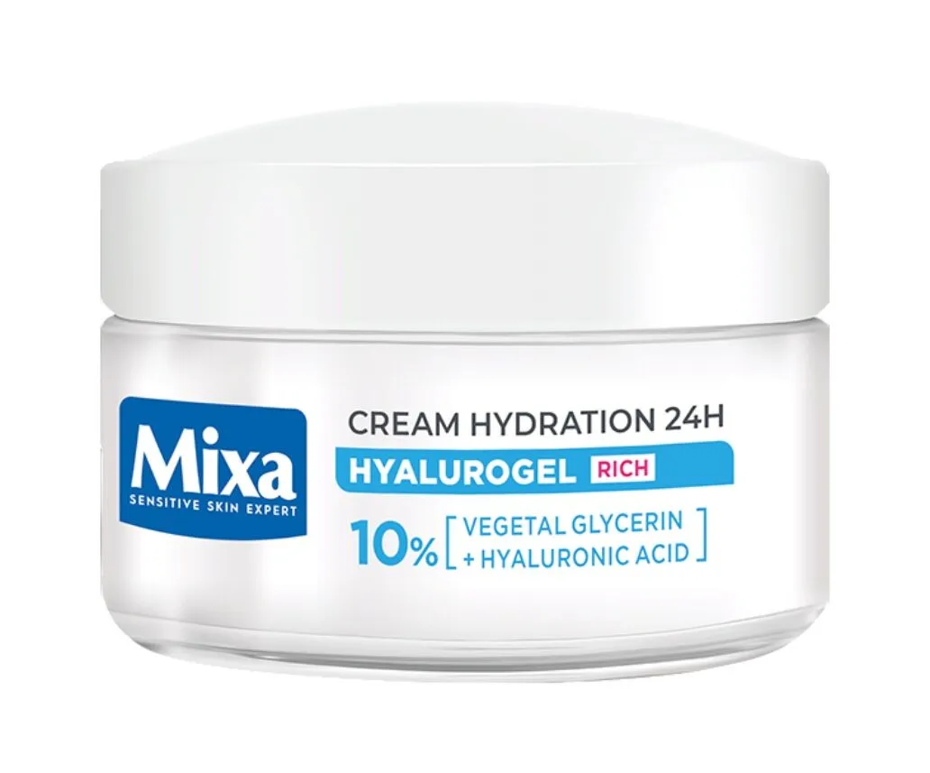 Bogaty krem nawilżający 24h do twarzy Mixa Hyalurogel to kosmetyk opracowany z myślą o pielęgnacji wrażliwej skóry suchej i bardzo suchej.