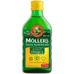 Möller’s Gold to starannie oczyszczony tran norweski o smaku cytrynowym, pozyskiwany z dziko żyjących ryb, stanowiący wyjątkowo bogate źródło naturalnych kwasów omega 3, w tym DHA i EPA