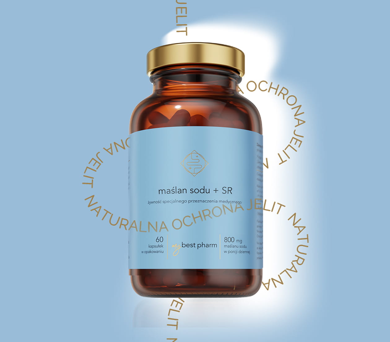 Maślan Sodu + SR firmy MyBestPharm to wysoce skoncentrowany suplement diety zaprojektowany w celu wsparcia prawidłowego funkcjonowania układu pokarmowego. Składnik aktywny to sól sodowa kwasu masłowego – kluczowy element dla komórek jelitowych i zdrowej mikroflory jelitowej.