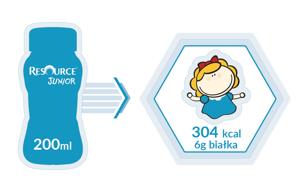 Resource Junior to pełnowartościowy, wysokoenergetyczny napój odżywczy przeznaczony dla dzieci powyżej 1 roku życia, który pomaga w zapewnieniu odpowiednich składników odżywczych niezbędnych do wzrostu i rozwoju. Produkt stosuje się w diecie dzieci, które zmagają się z niedożywieniem z różnych powodów, w tym przewlekłych chorób, jadłowstrętu czy problemów z gryzieniem i połykaniem. Formuła wzbogacona o zestaw 28 witamin i składników mineralnych wspiera odporność i rozwój.