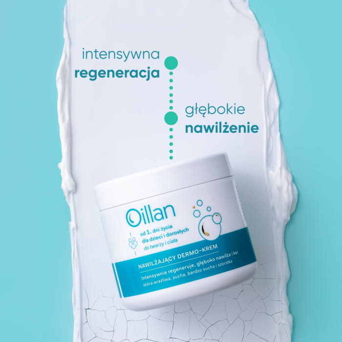 Nawilżający dermo-krem Oillan to intensywny produkt pielęgnacyjny do codziennego stosowania, który nie tylko nawilża, ale także regeneruje i odżywia skórę, przyczyniając się do poprawy jej kondycji już od pierwszego użycia.