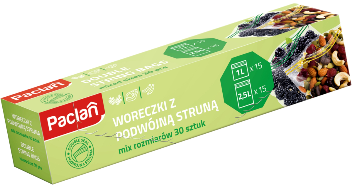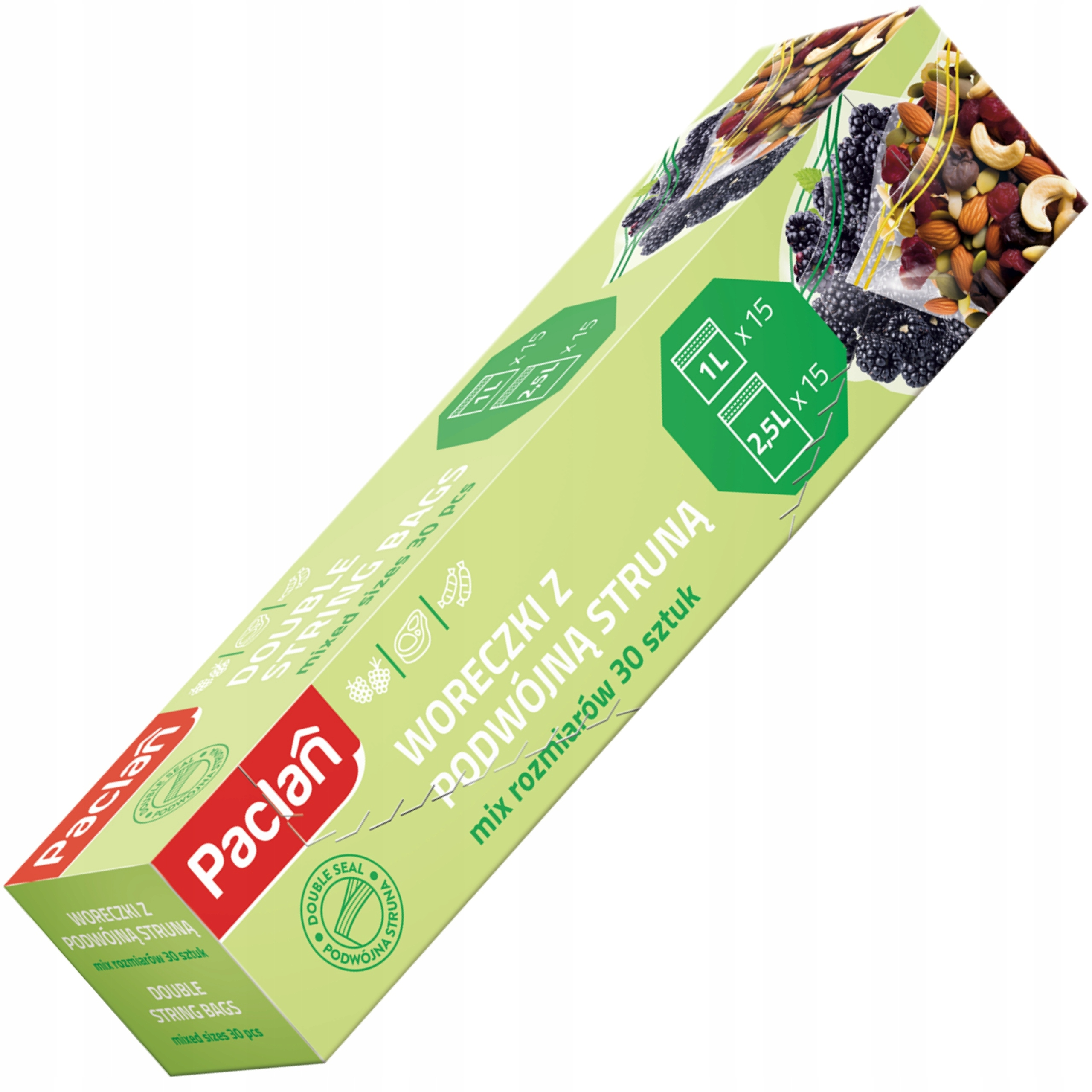 Paclan Woreczki na żywność z podwójną struną - 1 L i 2,5 L, mix, 30 szt.