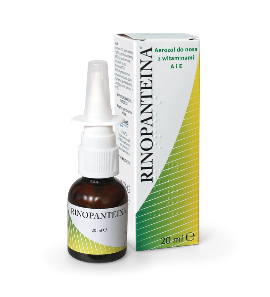 Rinopanteina to wyrób medyczny w postaci aerozolu do nosa o podwójnie korzystnym działaniu na błonę śluzową nosa i zatok: intensywnie nawilża oraz wspomaga regenerację. Tworzy warstwę ochronną, odżywia śluzówkę i zabezpiecza ją przed wysychaniem oraz czynnikami zewnętrznymi.