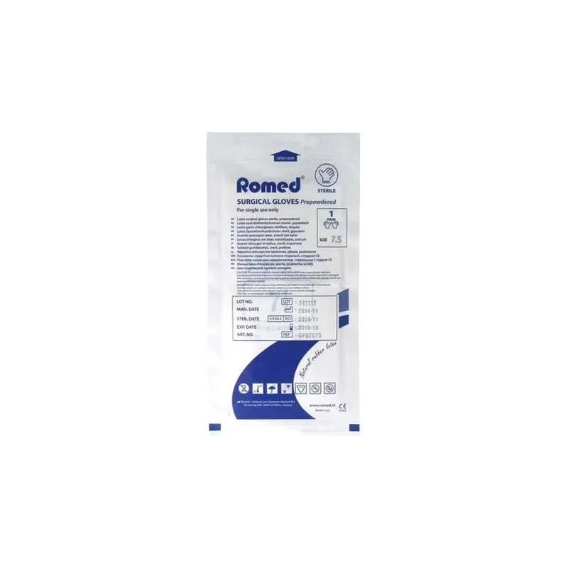 - Nazwa produktu: Romed Rękawice chirurgiczne jałowe pudrowe lateksowe 8.5 (1 para) – wyrób medyczny