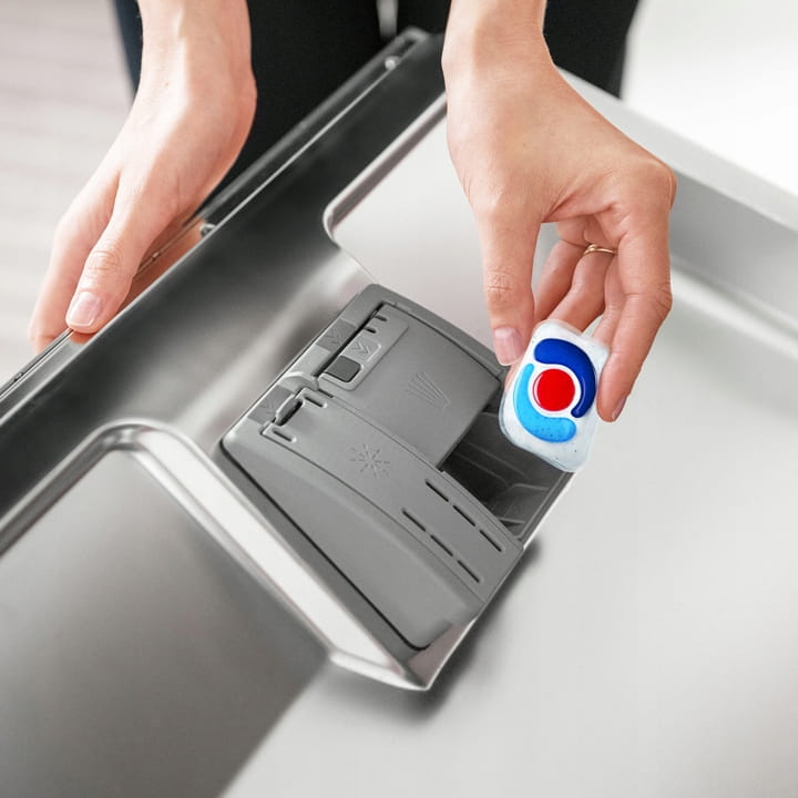 - Umieść tabletkę w dozowniku zmywarki.