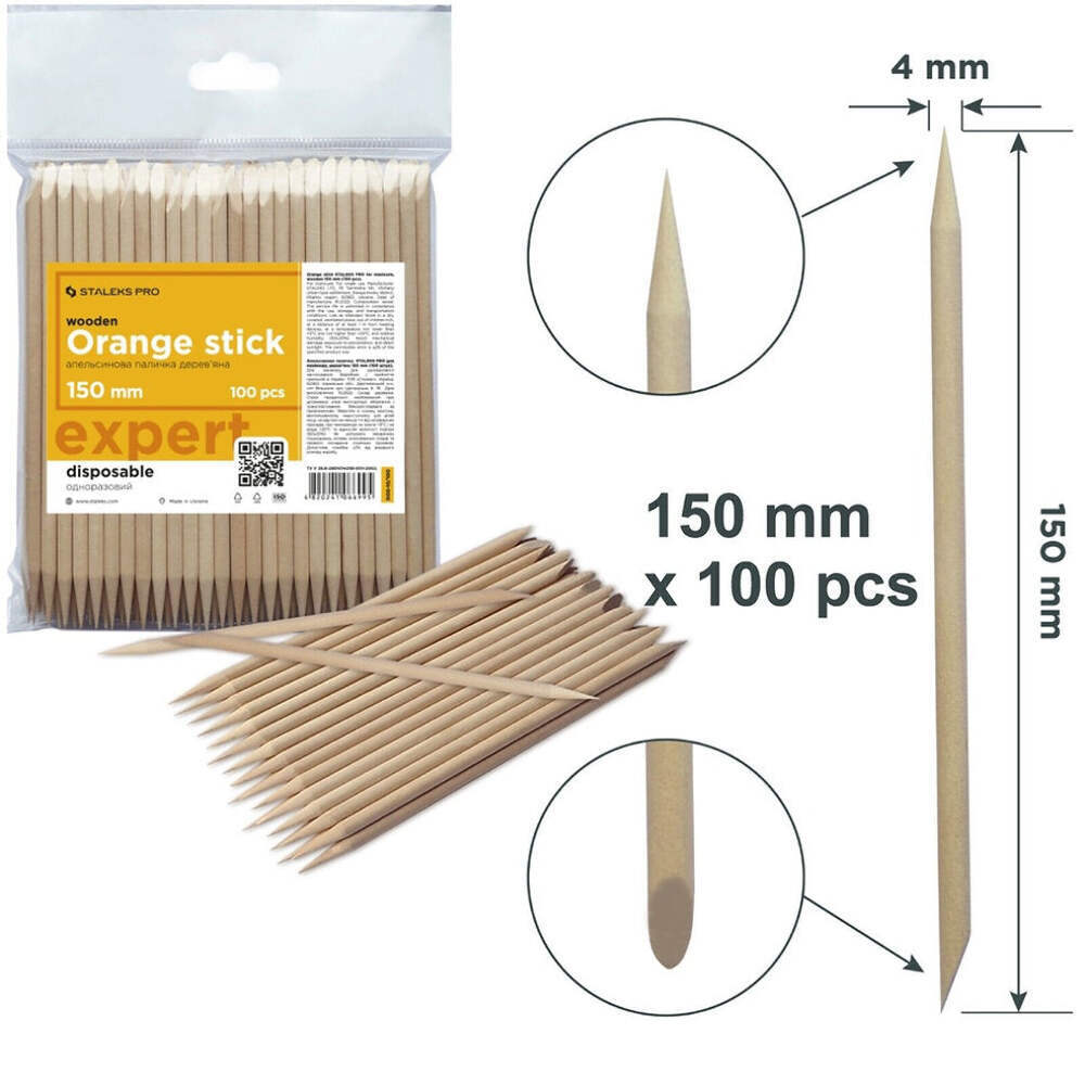 Staleks Expert Wooden Orange Stick – patyczki drewniane z drzewa pomarańczowego do manicure 150 mm (100 szt.)