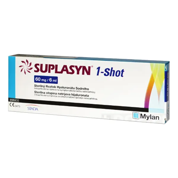Suplasyn® 1-Shot to wyrób medyczny w postaci iniekcji dostawowych zawierający sól sodową kwasu hialuronowego, stosowany w celu zmniejszenia bólu związanego z chorobą zwyrodnieniową stawów oraz dla poprawy ruchomości stawów. Dzięki swoim właściwościom lepkoelastycznym, produkt zwiększa lepkość i elastyczność płynu stawowego, amortyzując stawy i dysponując prozdrowotnym działaniem na chrząstkę stawową. Produkt przeznaczony do stosowania u dorosłych, nie stosować u dzieci, kobiet w ciąży ani karmiących piersią.