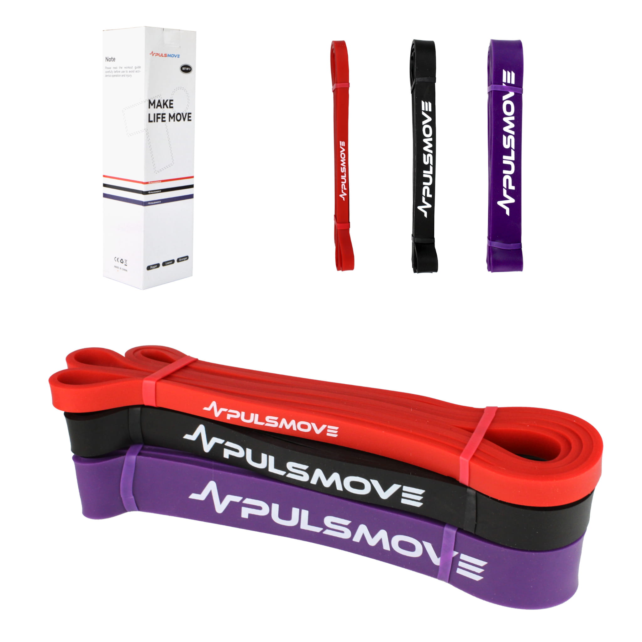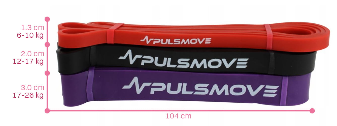 W zestawie 3 Taśmy Oporowe PULSMOVE o różnych poziomach oporu:
