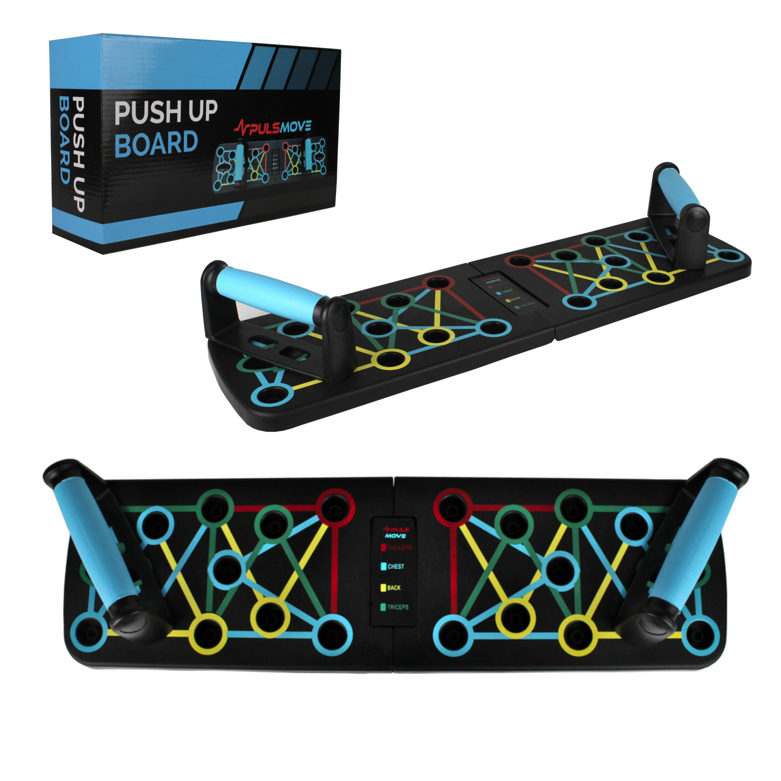 PULSMOVE – ZESTAW TRENINGOWY: DESKA DO POMPEK + GUMY OPOROWE + MATA