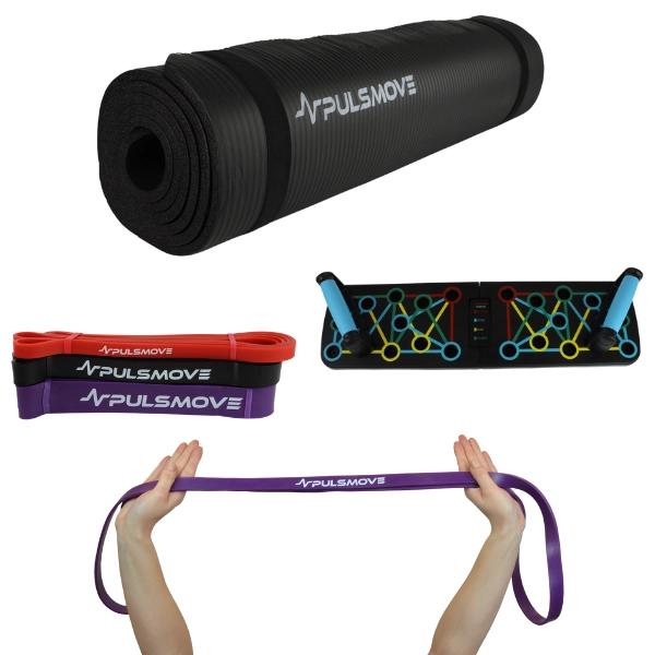 Zestaw do treningu PULSMOVE Deska do pompek, Taśmy Oporowe i Mata do ćwiczeń