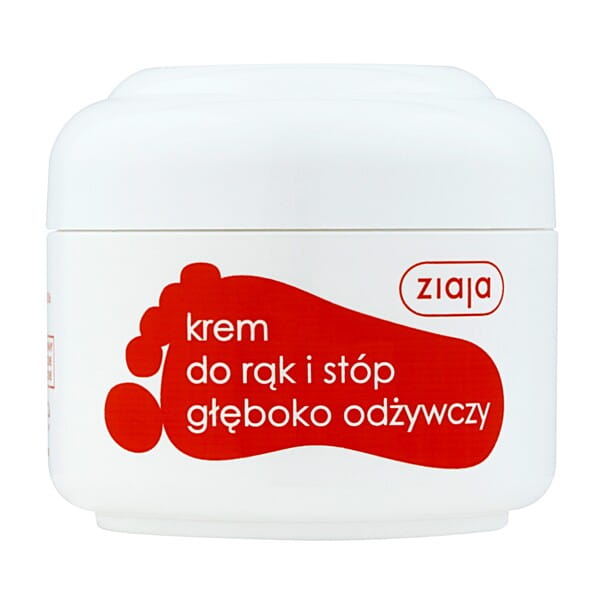 Ziaja Stopy Krem do rąk i stóp głęboko odżywczy – przeciwdziała pękaniu oraz nadmiernemu rogowaceniu naskórka. Kosmetyk wygładza, zmiękcza i uelastycznia skórę. Krem może być stosowany również przez diabetyków. Pojemność 50 ml.